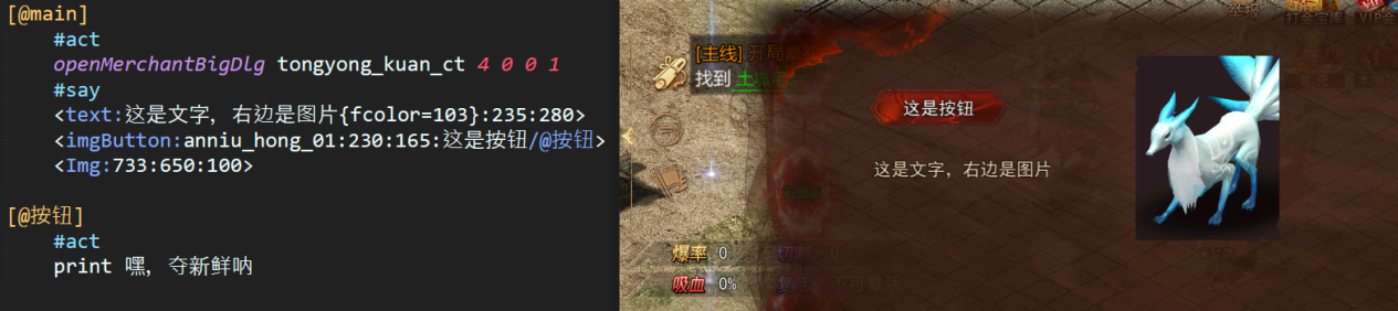 重要提示:在一级对话框中,按ctrl+g并点击对应元素,可查看其坐标与对应脚本文本。拖动可调整布局,获取你预期的UI效果并(你手动)记录你的元素坐标位置。如果你放置的元素没有显示,有可能是坐标过大不在对话框内了。