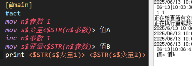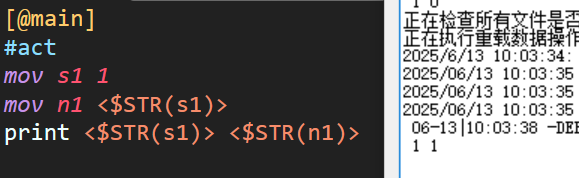 常用的变量分为字符整数型变量与字符串变量,以N变量和S变量为例说明:变量在使用前不需要提前声明。N变量默认值为0,s变量默认值为空。