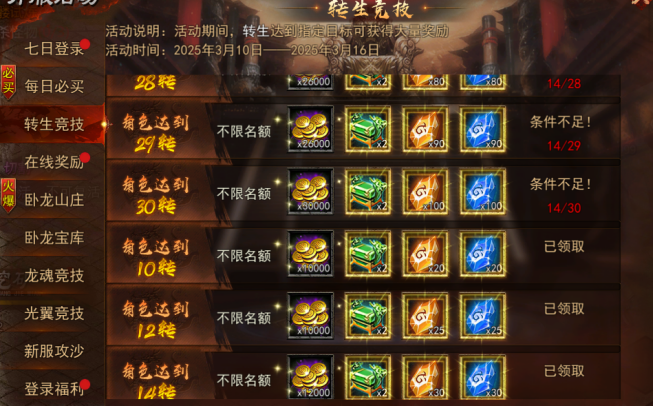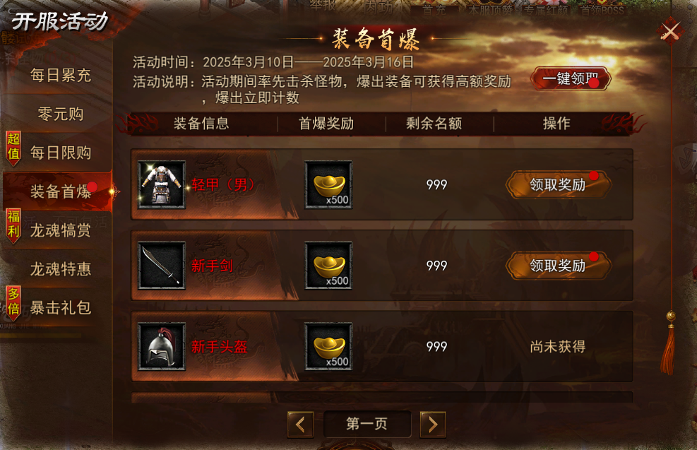 (更变态可参考装备首爆,加入顺序分为:可领取、未领取、已领取、无名额)