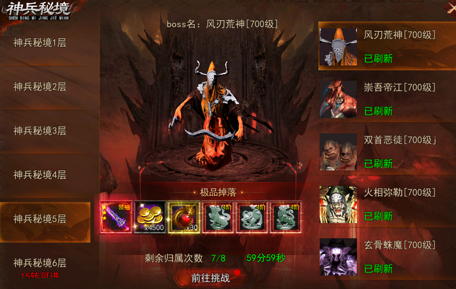 例如专属boss挑战次数、神兵秘境挑战次数等。