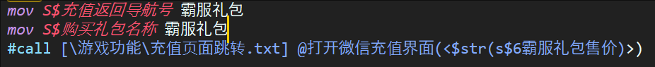 以霸服礼包为例,在对应的充值按钮功能加入如下内容