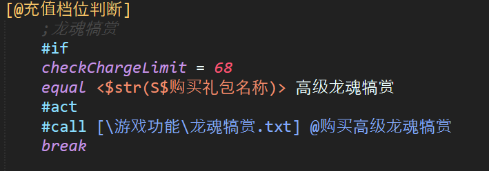 程序自带的充值判定为当前充值金额。相同金额的不同礼包需要独立判定。打开\scripts\Mir200\Tejieconfig\Tejieconfig.txt,查看充值配置,如果没有你需要的充值金额档位,联系zhy