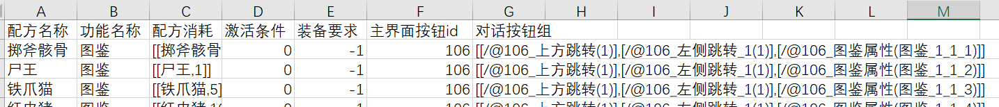tb_g0功能配方表:以功能名为关键字,记录配方列表。打开某个功能界面时,遍历对应的配方列表,给界面上的对应按钮加、删红点。