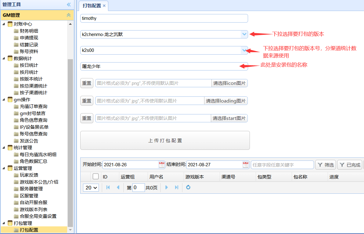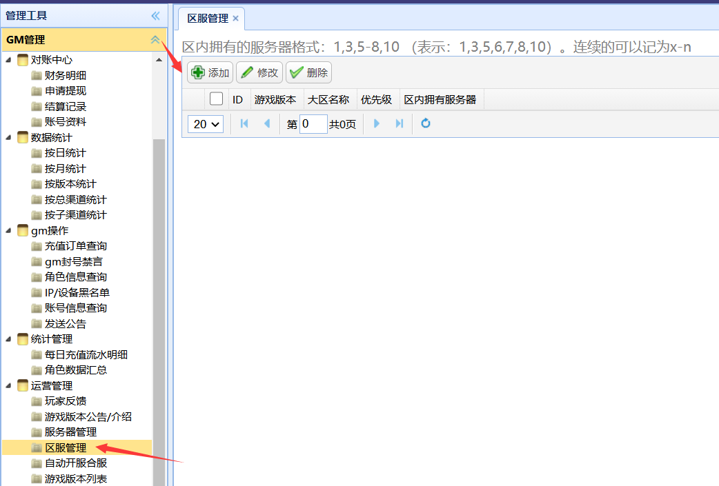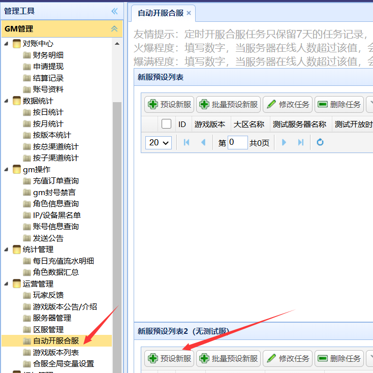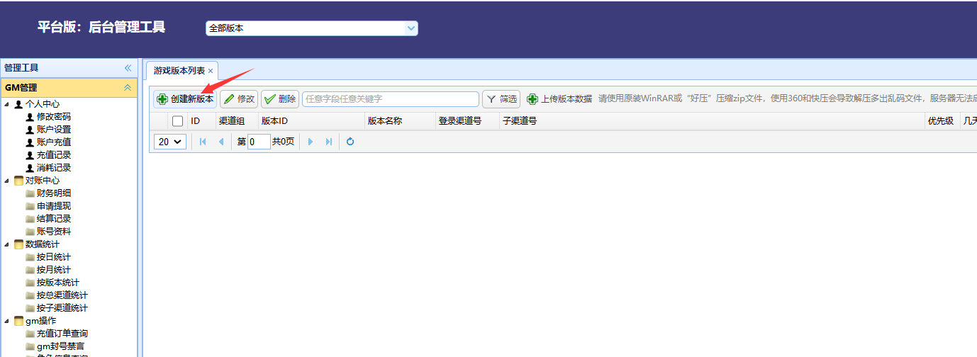 打开GM后台,找到运营管理-游戏版本列表,然后点击“创建新版本”如下图所示