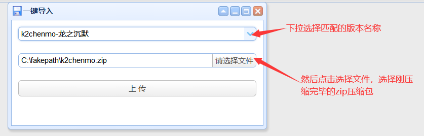 点击“上传版本数据”之前先把版本的文件夹压缩,切记一定要压缩成zip压缩包,否则不能使用,
